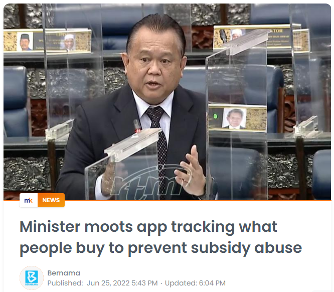 4 July 2022 - Having worked with several governments and facilitators on digital transformation throughout my career, reading that the Minister of Domestic Trade and Consumer Affairs proposed to track what people buy via apps disheartened my spirit: although the intention is to prevent subsidy abuse, it depicts a very influential and trusted individual keen on using technology to solve all sorts of problems without much thought on practicality, usefulness and the possible ethical repercussions.